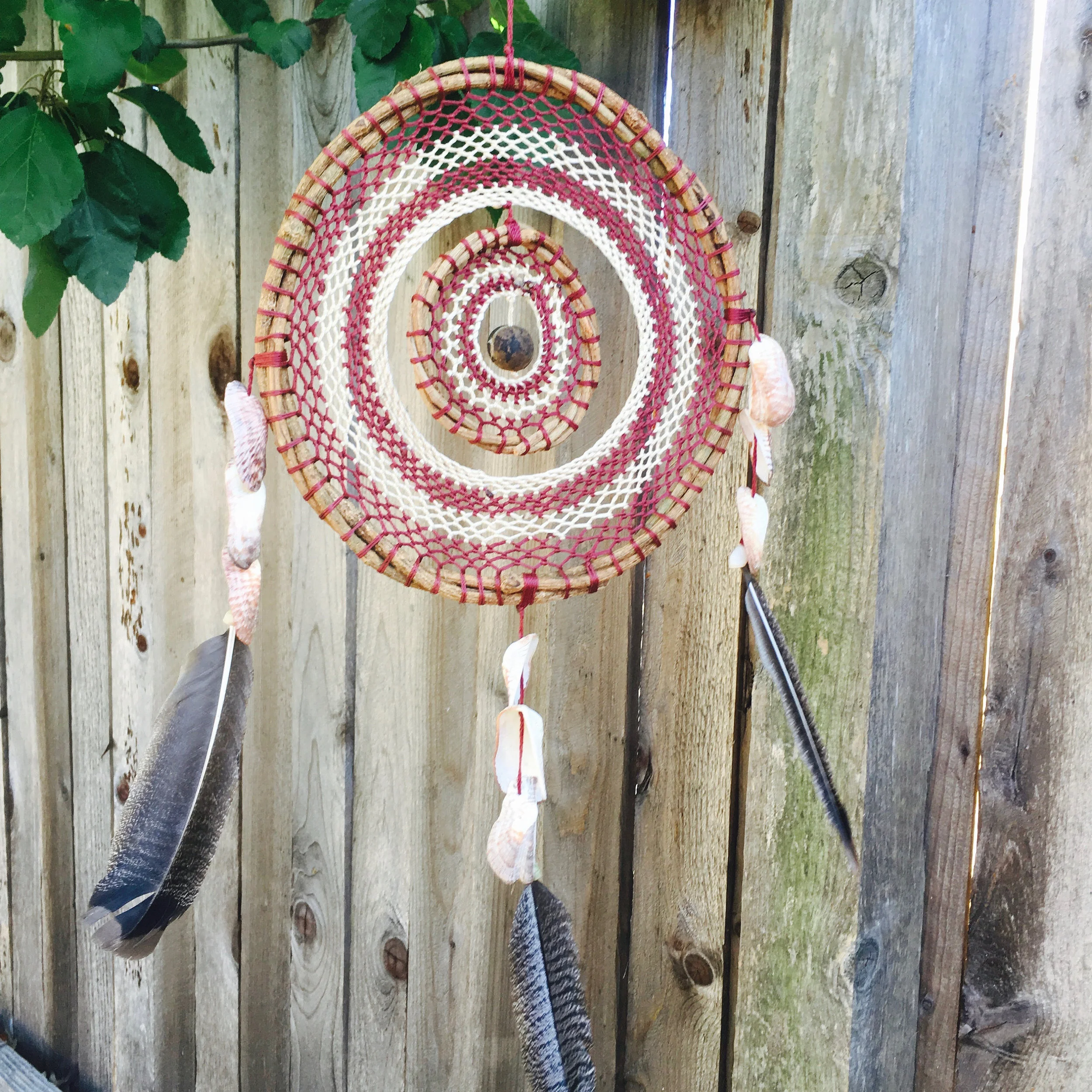 Handmade Mayan Dream Catcher Burgundy + Cream with Ojo de Venado and Feathers ||| Mexican Folk Art ||| Home Decor