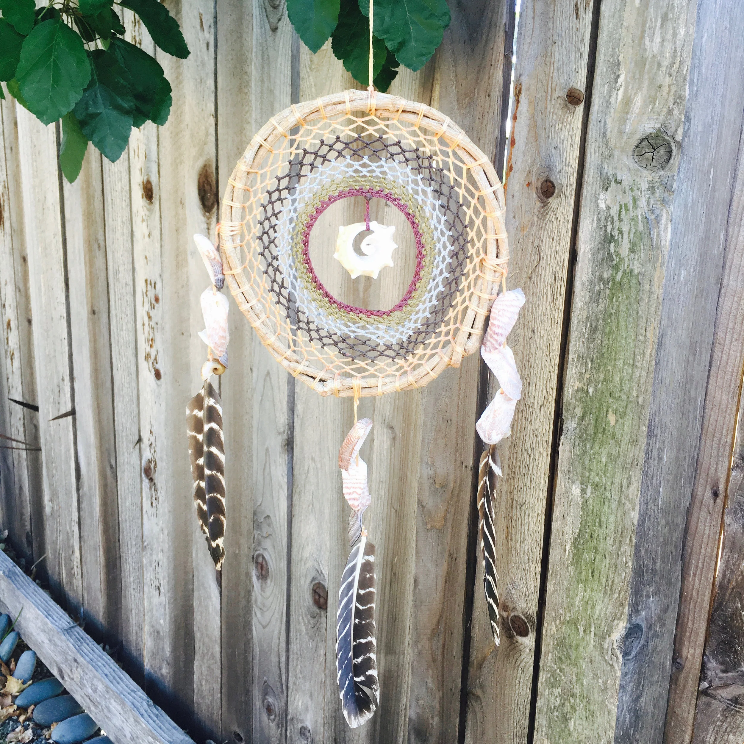 Handmade Mayan Dream Catcher Brown + White with Shells and Feathers ||| Mexican Folk Art ||| Home Decor