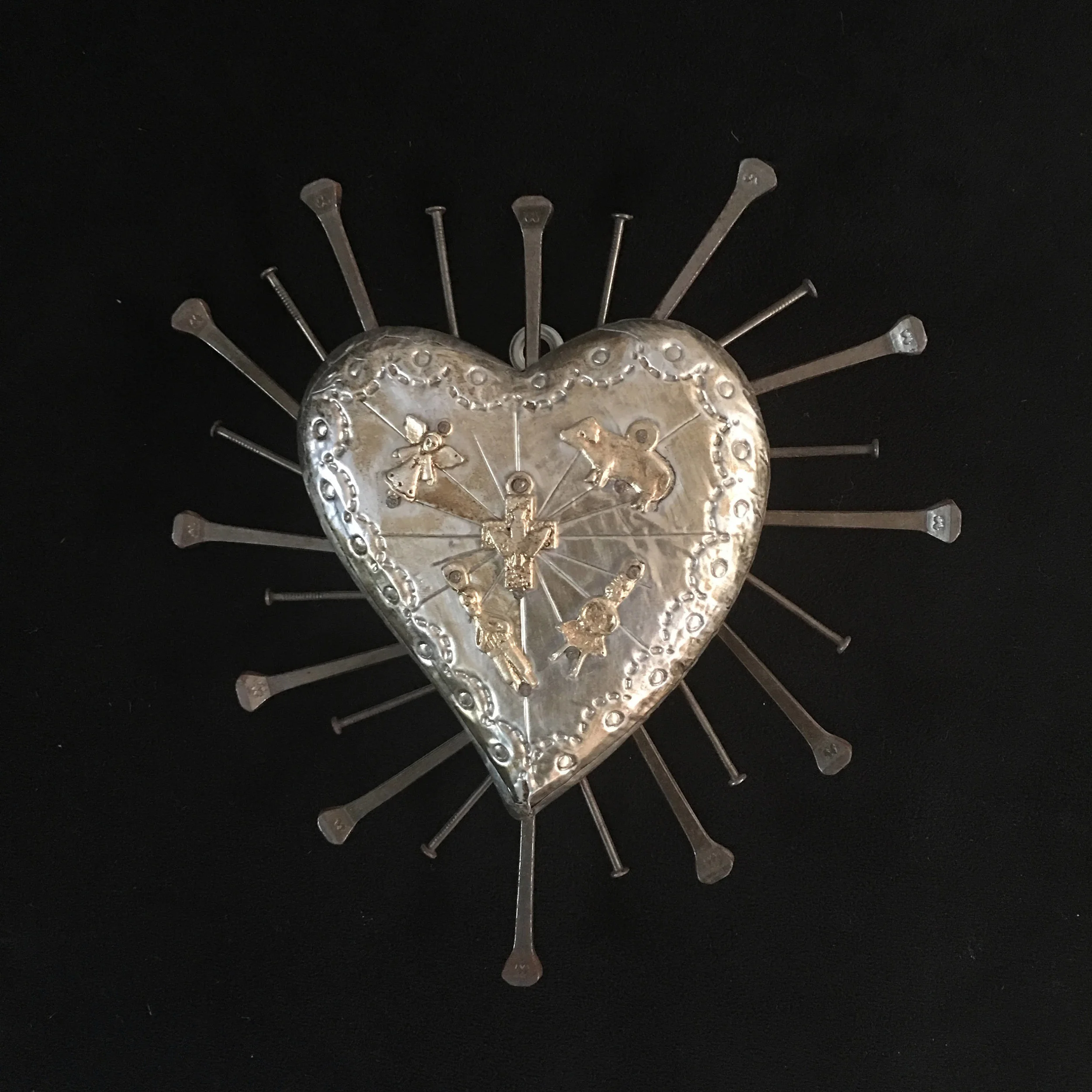 Milagros Wooden Silver Sacred Heart with Spikes ||| Mexican Folk Art ||| Handcrafted